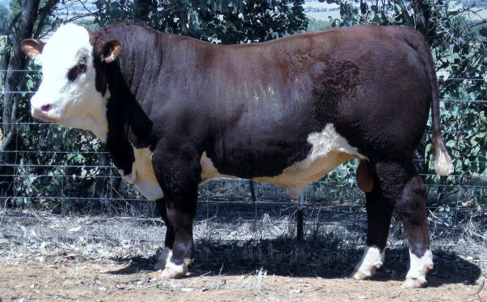 STUD SIRE: Attention stud breeders looking for a heifer joining sire. The more you look at this great sire prospect the more you like him. Its not only his perfect whiteface cosmetics but its also his carcase shape, spring of rib, clean sheath and perfect structure. His Breedplan EBV's are almost perfect his calving ease, birth weight, milk, growth and carcase data all get a big tick. All 4 index values are in the top 5% of the breed. Could possibly be the best sire carrying a Redford pedigree to ever go through the Injemira sale ring and there has been plenty of good ones. The modern beef industry requires bulls just like this. The perfect stud sire for a heifer joining program. H