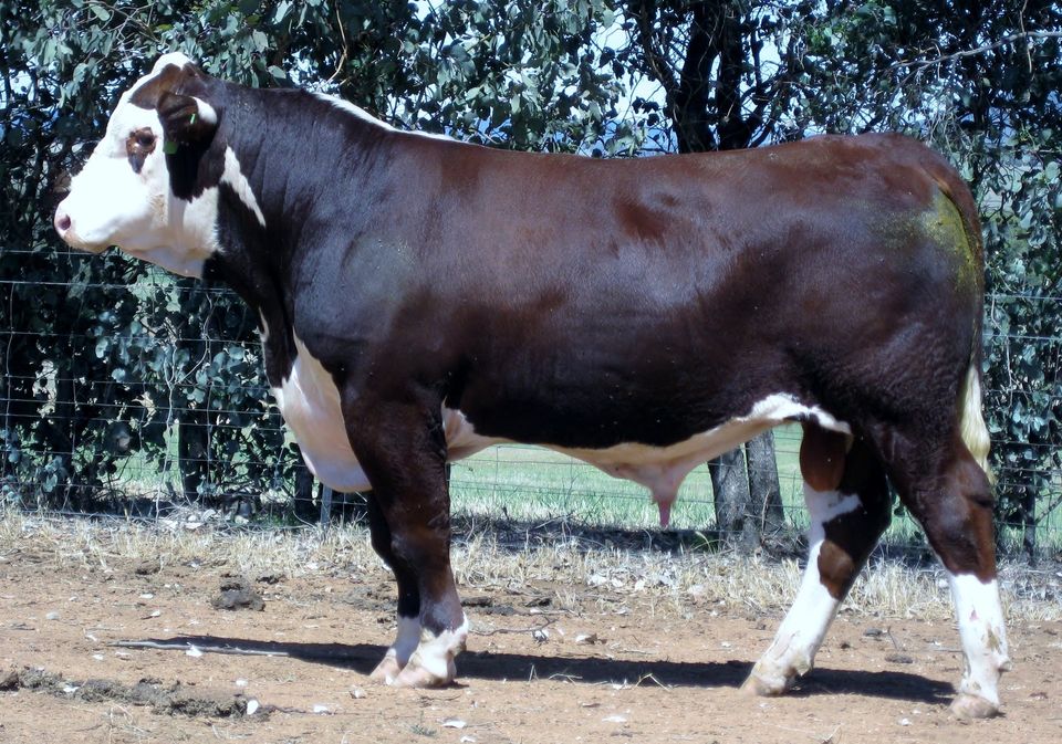 STUD SIRE: An absolute stud sire in the making and he is a 2 y/o heifers first calf. His Breedplan EBVs are exceptional with strong calving ease traits, low birth weight, high growth in the top 1%, above average milk and carcase data that is just outstanding, culminating in his 4 index values being in the top 1% of the breed. Phenotypically he is a modern sire with a moderate maturity pattern, tremendous muscle shape, smooth inlaid shoulders and a sires outlook. All this is complimented by a temperament that is completely 'bomb proof'. His maternal pedigree is packed full of quality going back to the great Pattie X007 that had in excess of $180,000 worth of sons sold topping at $45,000 in 2008. All progressive stud herds should be looking at this sire as their next calving ease/carcase sire. NB: 50 units of semen have been retained for in herd use. H