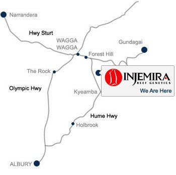 From the South: Travel 44 km North East of Holbrook along Hume Highway, turn left at the Wagga Wagga Rd. travel 18 km passing through Book Book towards Ladysmith until you reach Trewalla Rd., turn right, “Injemira Sale Complex” 400 m on left.