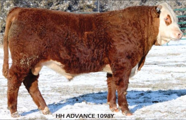 HH Advance 1098Y is the second of our outcross horned AI sires for 2012. Advance 1098Y was the high selling Holden's Sale in 2012 selling for US $102,000 for a 3/4 interest. 1098Y is a curve bender with outstanding calving ease combined with exceptional growth and that renowned Holden Line 1 maternal power.