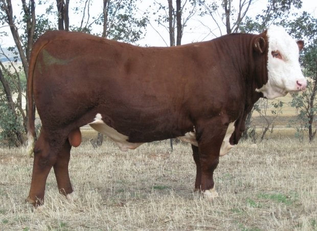 Blackberry was purchased at Dubbo National in 2013 for $18,000 in partnership with Ridgeview Herefords. The Blackberry offspring possesses the outstanding quality of ease of calving then grow when they hit the ground. A sire that is doing everything we had of hoped not only low birth weight, but his sons are of moderate frame with extreme thickness combined with overall softness. The modern beef animal! Numerous sons sold in excess of $15,000 in 2016. He brings to the table excellent carcase, high IMF% with extremely low birth weights, many ideal 'heifer' bulls are catalogued in 2018.