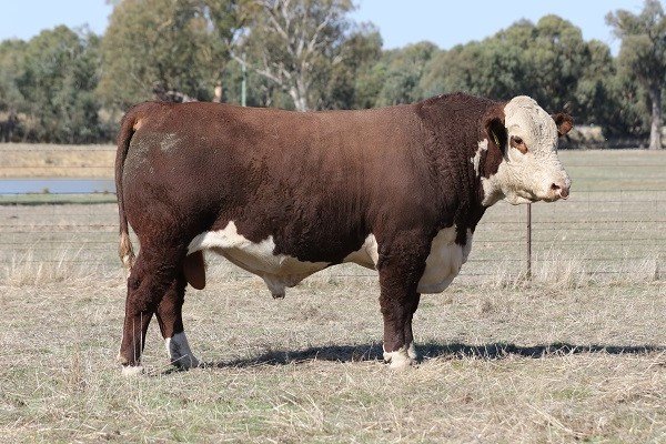 Another out-cross Homozygous poll sire direct from the USA. This bull is really kicking goals in the American Hereford Associations progeny test trial and with the commercial relevant data coming back had to be used extensively in the Injemira program. The great legacy of this sire has been his son Fortune M152 that you can see from this catalogue has had a huge impact on our breading program. The Fortune line has fantastic calving ease combined with growth and unrivalled cacase data.